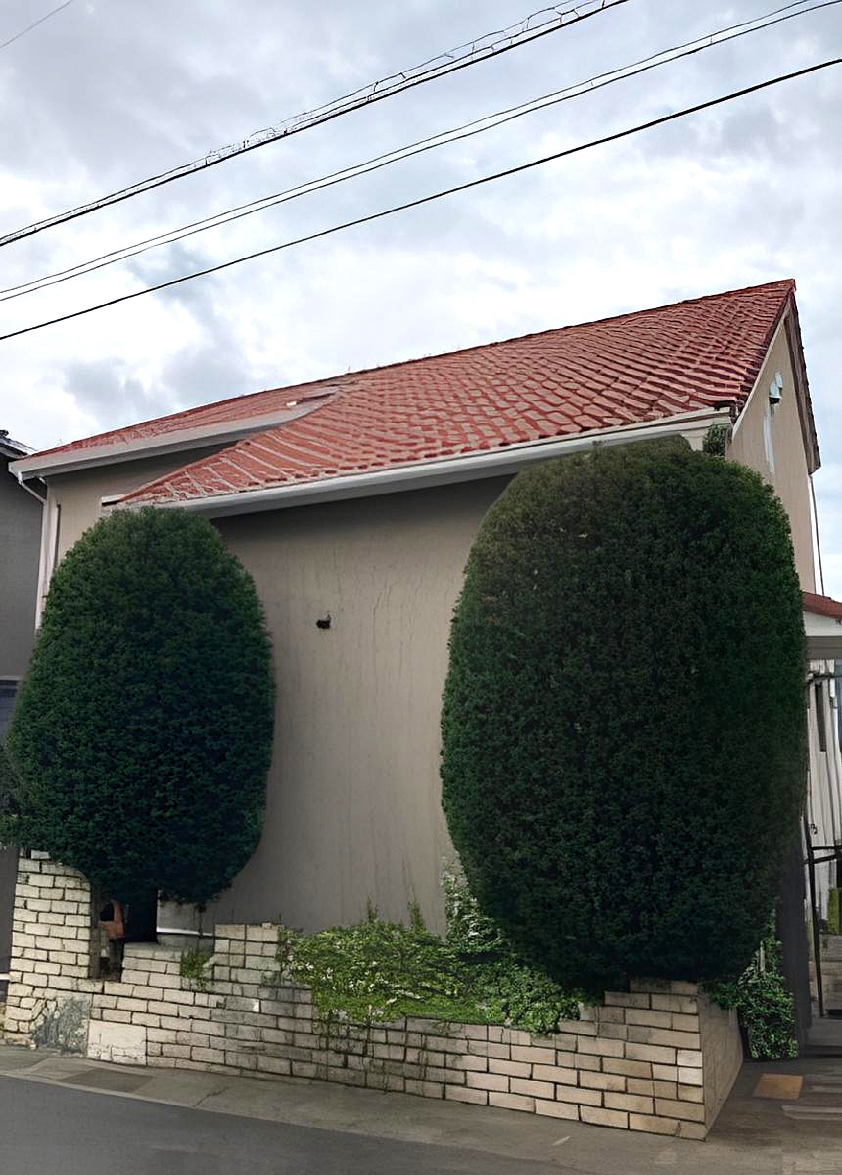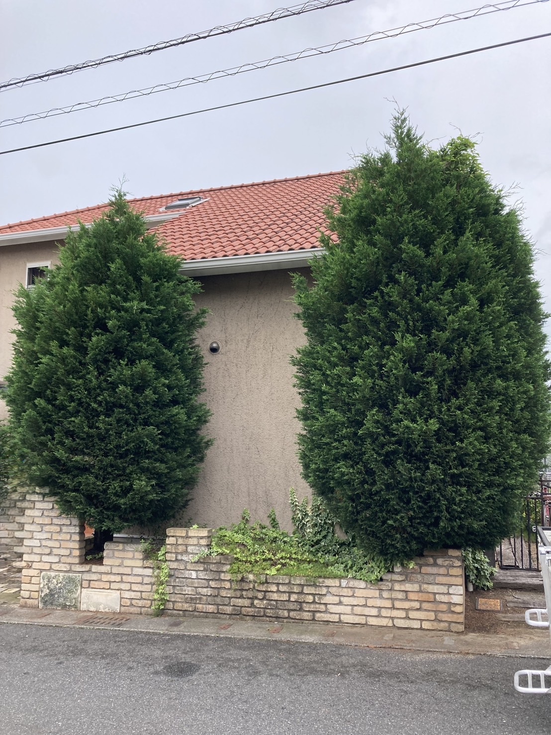 宇都宮市の戸建て住宅にて大きく成長したコニファー2本の剪定を実施
